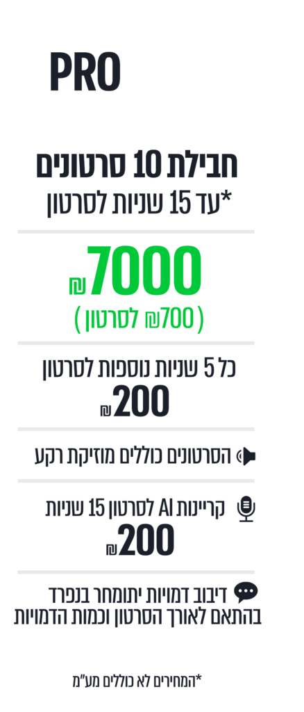 🎬 וידאו מרהיב באורך 15–60 שניות (לבחירתך)